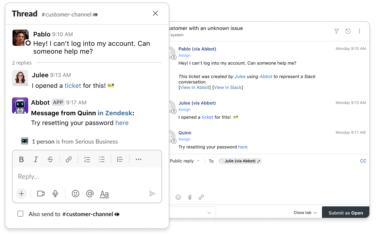 Invite Abbot to the channel if you want help staying on top of any conversations and to begin automating manual work.
